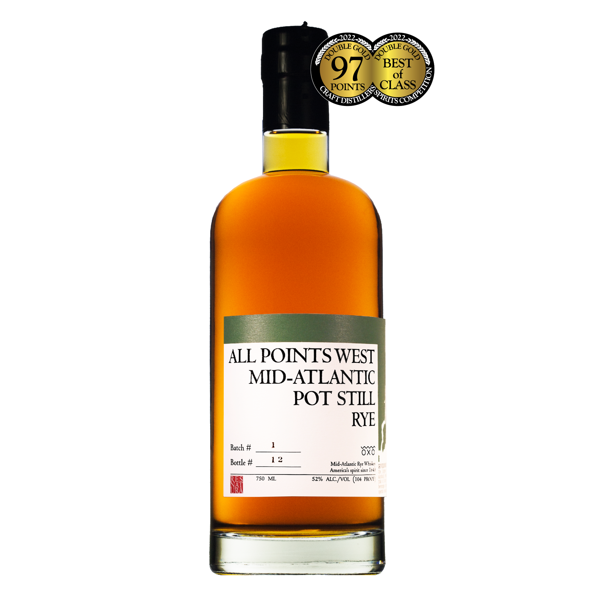 A true corn-free Mid-Atlantic Rye.Starting with distiller Wilhelm Hendriksen in 1640 on the Kill Van Kull which connects Newark’s & New York’s bays, until 1972 when the last rye distillery closed in Maryland and 1989 when the last rye distillery closed in Pennsylvania, Mid-Atlantic Rye was America’s true small grain whiskey. Later when the Mid-Atlantic Rye brands were reintroduced by Kentucky distilleries the Kentucky distillers used their bourbon know-how to create the high corn Kentucky Style Rye we know today. Reviving tradition, All Points West Distillery recreates and distills an authentic, small grain, corn-free, Mid-Atlantic Rye.